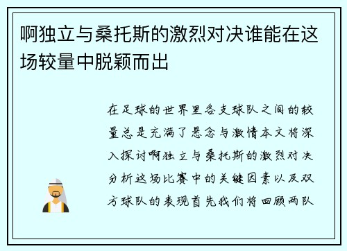 啊独立与桑托斯的激烈对决谁能在这场较量中脱颖而出